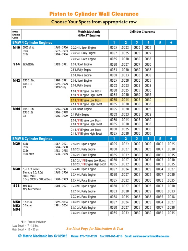 Piston Clearance Chart PDF PDF Piston Cylinder (Engine)